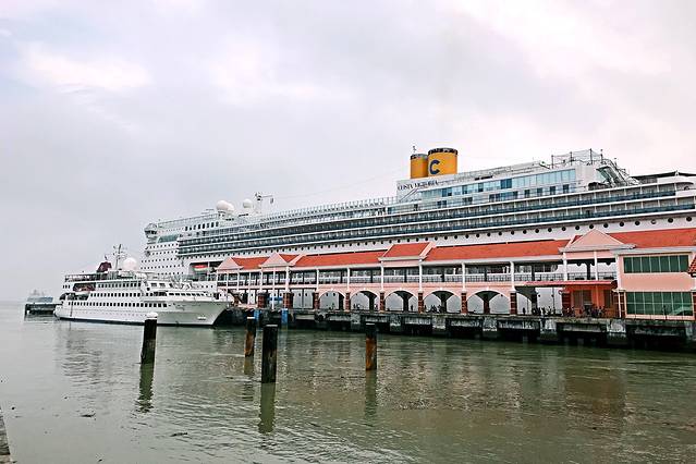 在槟城,邮轮可以直接停泊在码头,不需要靠小船接送那么浪费时间。