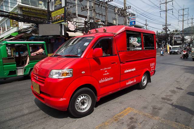 下船马上打车去Jungceylon 双条车开价200THB 真把我们当游客砍,结果100THB成交。