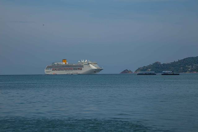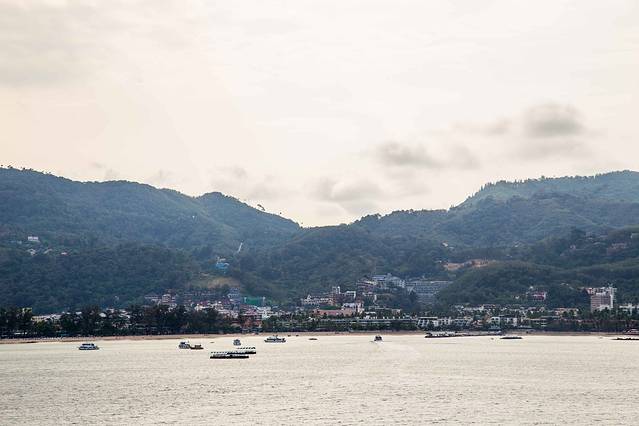 邮轮停卡在巴东海边 Patong Beach ,这里是普吉岛最热闹的海滩。
