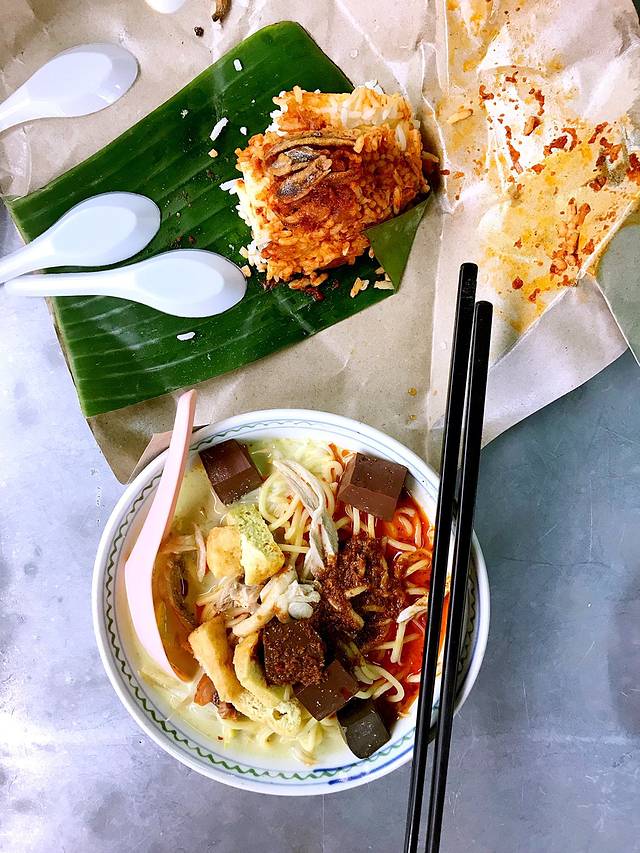 槟城最有名的白咖喱面还有马来西亚最传统的纸包椰浆饭。