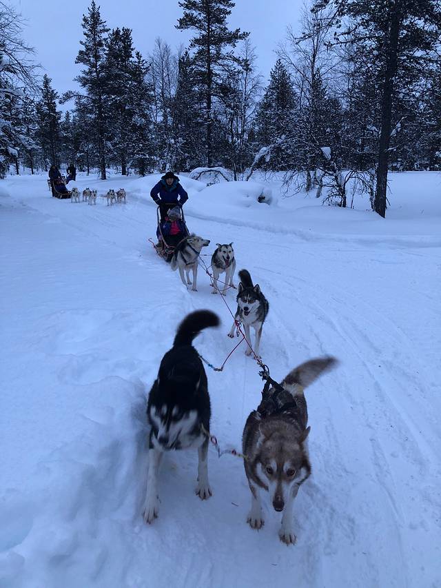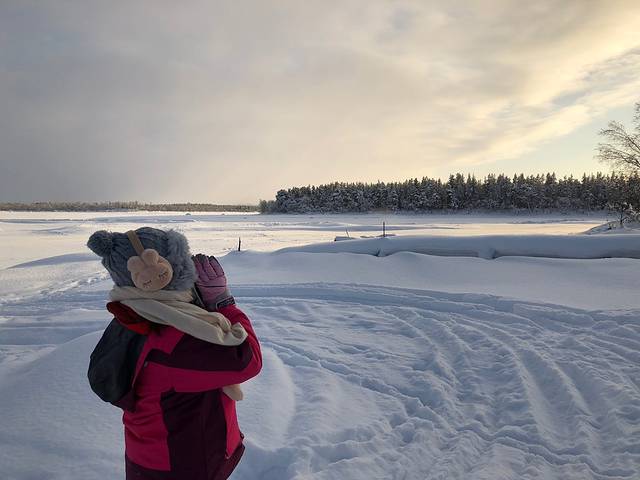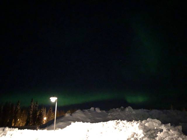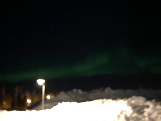 整个行程中最开心的莫过于看到北极光,我们是在圣诞老人村看到的。虽然没有很强烈只有几道光,但比起完全没看到的话也算是有一点幸运了。圣誕老人村很多活動可以玩。我們有去玩驯鹿拉撬还有我去开最爱的雪地摩托车。开了去森林探险那一个小时,令我至今都感到很怀念。
