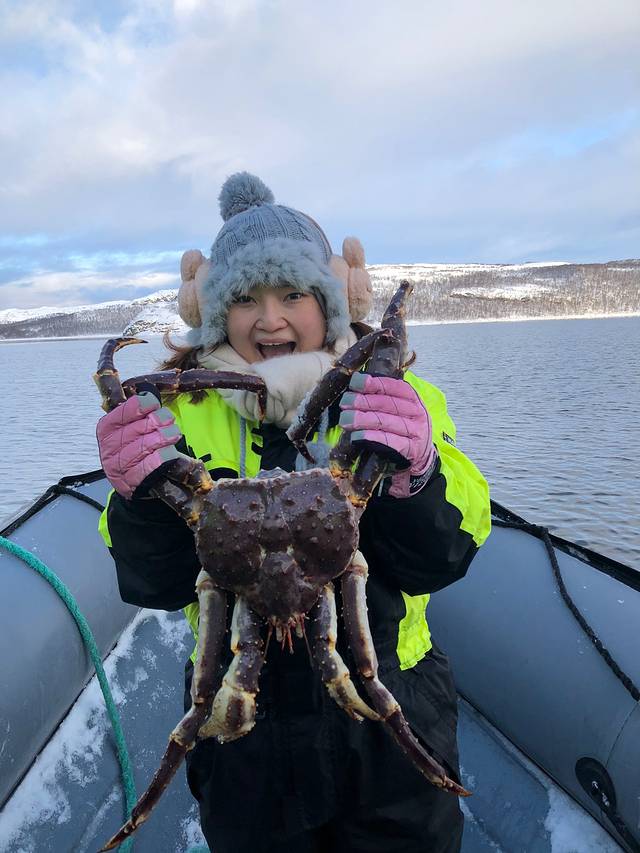 另外有个行程令我也非常大爱的是去挪姿边境的海湾去出海捉帝皇蟹。那是第一次看到有专人潜泳下去零下30度的水温去徒手捉蟹。然后出完海还可以尽情享用新鲜刚捕捉到的帝皇蟹。不枉我们一路坐了那么多小时的车去这个人间天堂。挪威真的好美,我们只不过去了它边境的一个海湾就已经漂亮成这样。令我对他的奥斯陆以及其他的挪威地方产生很大的兴趣,下一次一定要去作深度游。