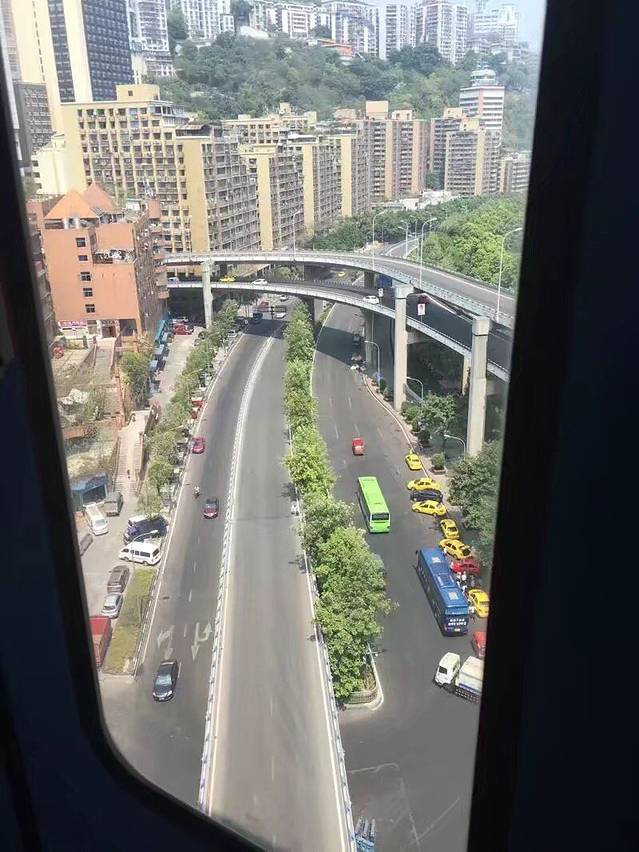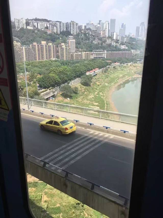 在轻轨上的风景 果然是山城 环山而行 有点惊险的感觉但还是很刺激的 😄