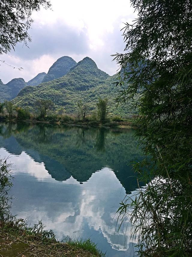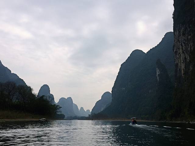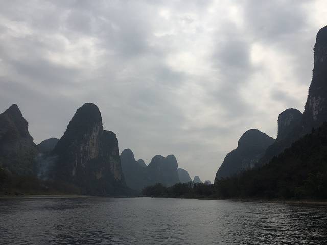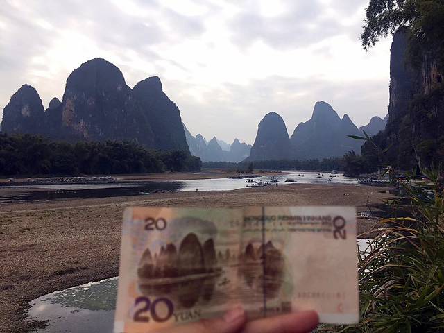 峰倒碧波盈,漓江暮霭青。兴坪山似画,阳朔水如晶。玉璧江心映,船歌岸柳听。金秋渔火夜,百里尽蝉鸣。不得不说桂林山水确实很美,到我们去的时候正逢枯水期,且再加上阴天,不免有些遗憾,但也正是因为这样,才使得景色优美的桂林游人甚少。