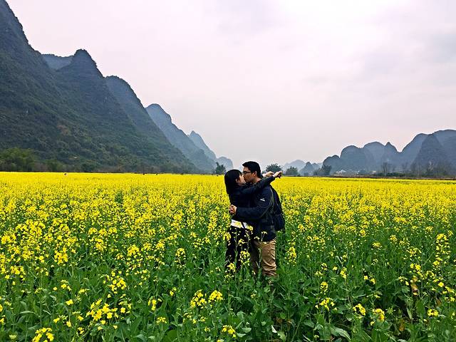 沿途往上走,可以看到成片成片的油菜花,我和我老妈更是喜欢的不得了,两位男士路边看车,我们则在油菜花地里玩了半天。