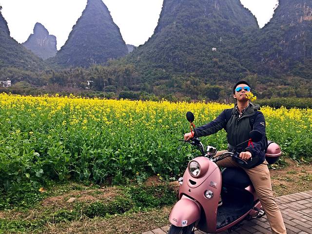 早上8点多起床,磨蹭到9点多钟,和客栈租了两辆电瓶车,准备骑行到十里画廊,然后再到遇龙河。