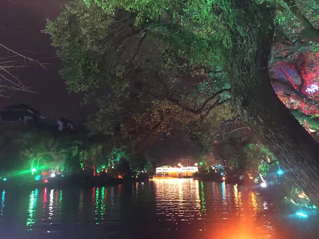 岸上的灯光都从植被的下面往上打,有点像鬼片拍摄现场