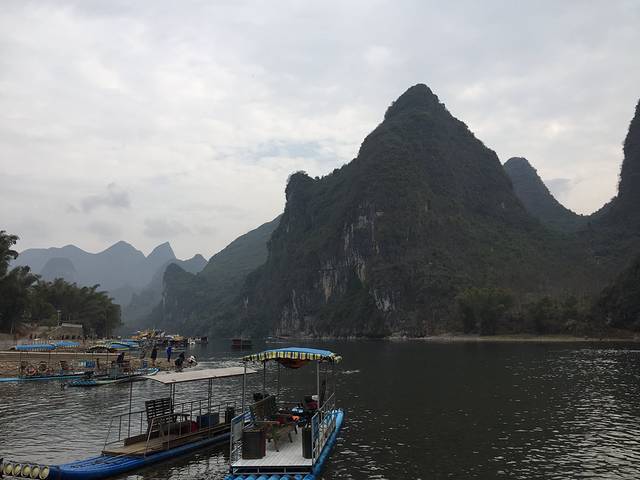 原计划是坐竹筏从杨堤开到兴坪,价格是218一人,后来觉得光坐竹筏一个多小时很无聊,便决定从杨堤坐到九马画山,之后自己徒步或者坐观光车,有竹筏票的话观光车免费。