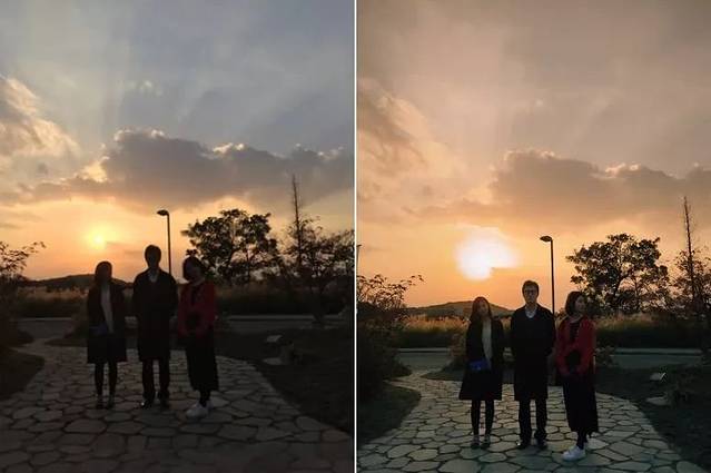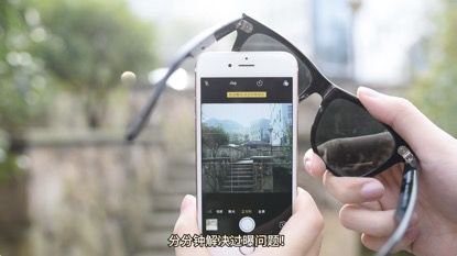 6、我们尽量避免在大光比环境下拍照,或者把过亮的部分从画面中避开,用树林、建筑把天空挡住,光比就没那么强了。也可以戴个墨镜,不是给自己带,是给手机戴墨镜。