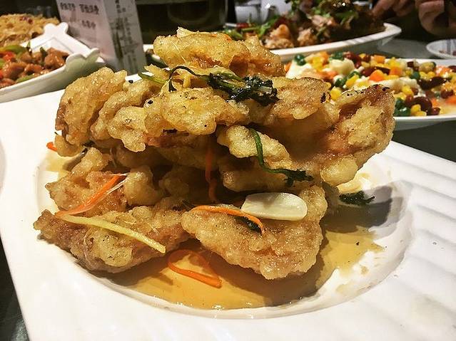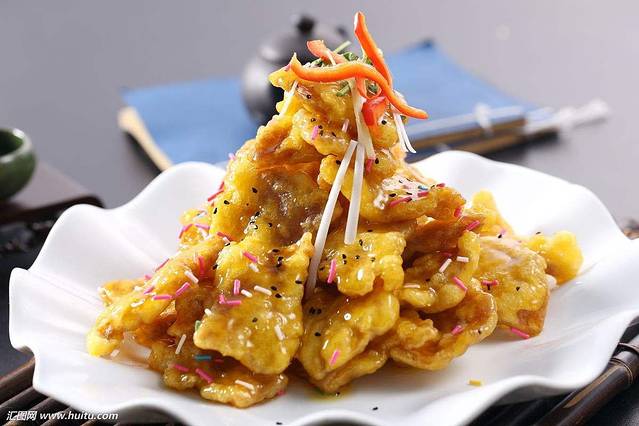 锅包肉原名锅爆肉,是一道东北菜,光绪年间始创自哈尔滨道台府府尹杜学赢厨师郑兴文之手。成菜后,色泽金黄,口味酸甜。