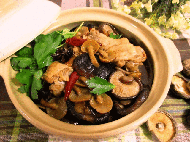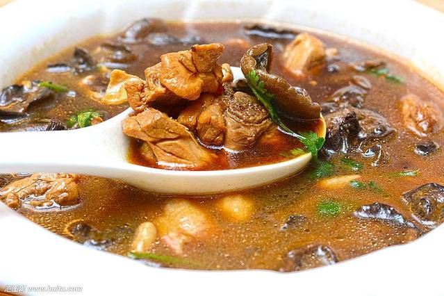 小鸡炖榛蘑也是比较流行的一道东北菜。在东北,榛蘑大多用在炖菜里,特别是与鸡肉搭配,更是美味浓郁。此菜式传入关内后,又有厨师加以改进,在其中加上绿豆粉皮一块儿煮,也是别有风味。尤其是在冬天吃,还有活血祛寒、预防风寒侵袭的作用,实在是好菜。