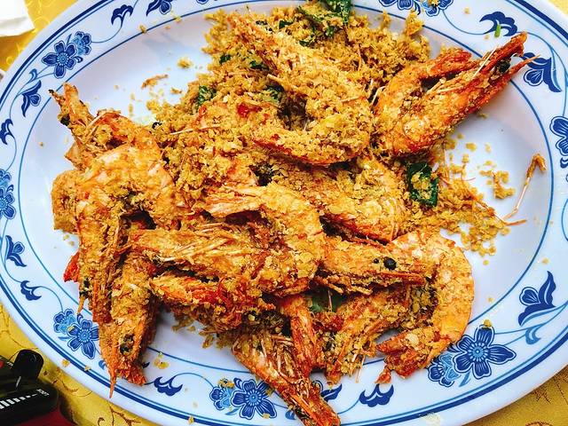 招牌菜麦片虾。光吃外面那层麦片都觉得好好吃