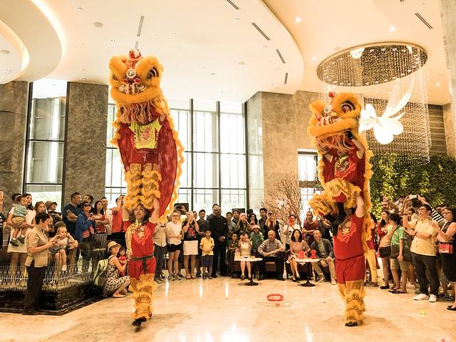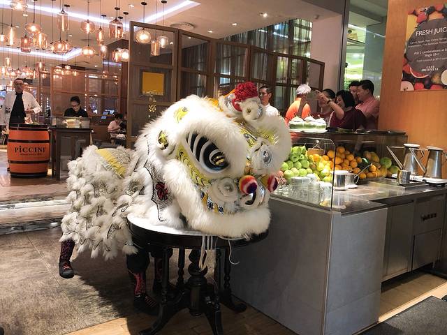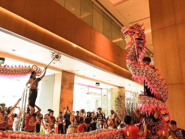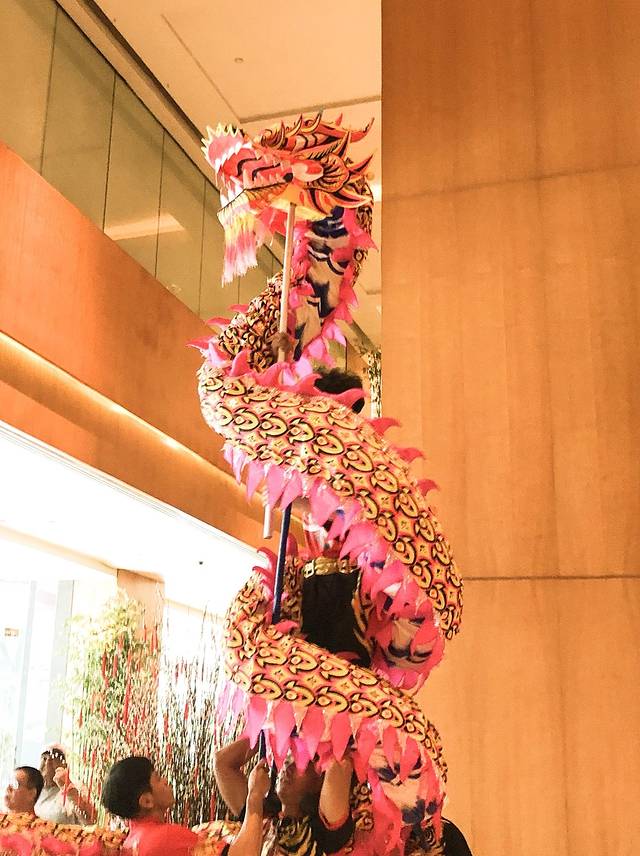 感慨完别人家的酒店之后,没想到自己入住的酒店也有舞狮表演!而且还有财神爷!还有舞龙!激动万分!浓浓的年味啊!舞狮表演我只在《黄飞鸿》里见过啊......更别提舞龙了