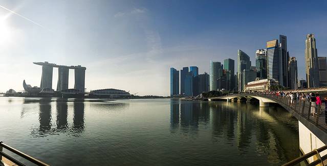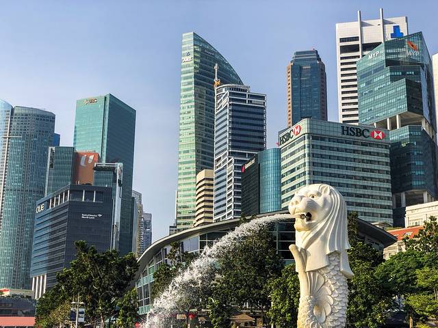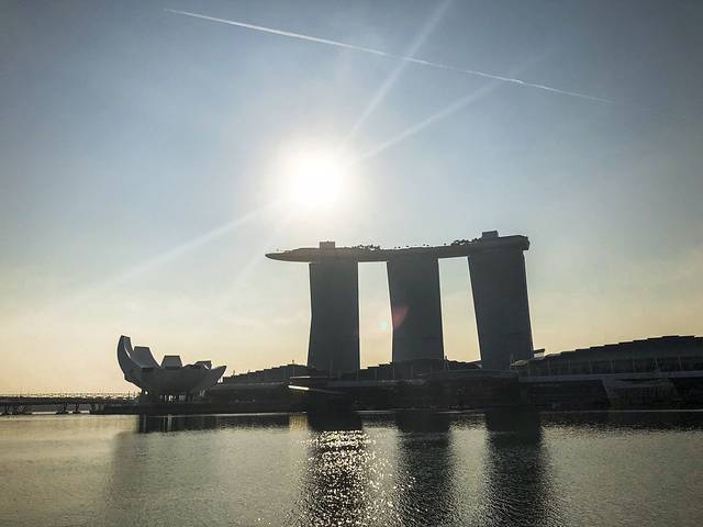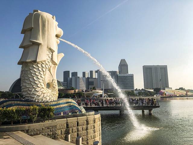 此时八点刚过,作为新加坡标志的鱼尾狮旁边已经人头攒动了。