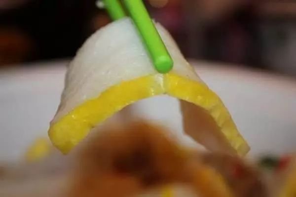 挑起一块蒸好的鱼糕,断面紧实,无大气孔,有许多微小且均匀的小气孔。入口具有鱼肉独特的鲜味,可口,余味浓郁。