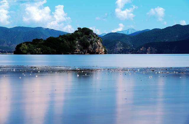 泸沽湖,俗称左所海,古名勒得海、鲁枯湖,纳西族摩梭语“泸”为山沟,“沽”为里,意即山沟里的湖,湖位于四川省盐源县与云南省宁蒗县交界处,为川滇共辖,湖东为盐源县泸沽湖镇(原左所区),湖西为宁蒗县永宁乡。