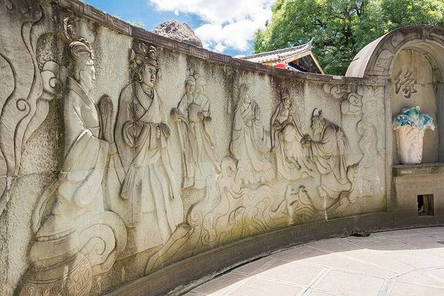 一般来说,有古迹的地方,必然会伴随着一些民间鬼神传说。“红龙井的传说"主要有两个版本,一是大理当地有一赵姓女子,网得一红鱼,不忍吃掉,便把这条鱼放生,结果这条鱼正是城中红龙,出于感恩过来与她结为夫妻,后生一子可求神问雨,此子为解海东大旱,化为地龙前去引水,为百姓献身;另一个版本就是赵姓年轻人家中贫寒,为了救治母亲,历经千难万险前去找红龙井中守护红龙求得玉白菜治好母亲疾病的故事;两个传说都以石雕的形式记录在红龙井周围这一圈石壁之上,还有一颗大的玉白菜留在边上。其实无论是哪个版本的传说,我们都无迹可寻,也不会真的去相信,但有这么一个传说在景点上,总会多少一些探寻的兴趣,不然光是一口水井,又有什么看的呢?