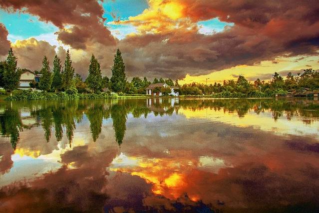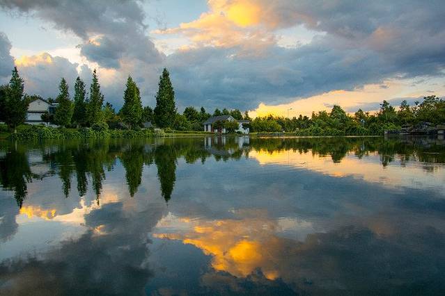 大理大学的情人湖位于校园的西边,占地面积不大,但景色却是整个校园内最美的一个地方。虽然过来的时候天公不作美,但细细一看,发现乌云密布倒影在水面却也是有别样的一番美。湖边绿树四季常青,树旁几座白色小楼成了点睛之笔。无风无浪,安静祥和~