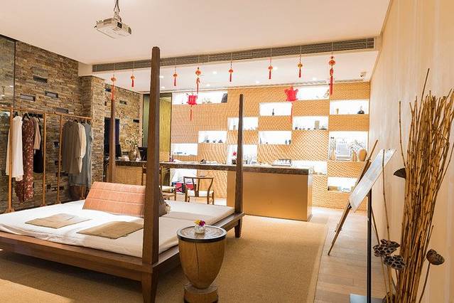 前台所在地是酒店海景房这一面,泳池、餐厅、茶吧也都在这旁边。酒店的大厅设计比较独特,可能也是为了充分利用室内面积吧。除开中间有一个大木床之外,旁边还有当地特色衣物售卖,前台背后的架子上还有纪念品,不得不说酒店真是生财有道啊~