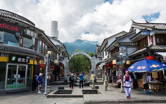 水街是位于红龙井景点前面的一条休闲街道,具体位置在大理古城南门往下走大概二百米左右的位置,非常好找到,因为这是古城中轴线上的第一个三岔路口,而且更具有明显地标的是入口处还有一个大大的德克士,虽然在一条号称有几百年历史的水街旁边看到德克士大大的炸鸡广告有点怪异,但也只能假装德克士是一家百年老店,当地特色菜馆,不然就真的会觉得古城商业化严重,从而影响到心情。至于为啥这里要特地说出来呢?是因为各位来大理古城玩的时候会看到很多这种情况,比如古城里的肯德基、麦当劳、华莱士、连锁超市等等,咱们也只能忍一忍了,毕竟星巴克都开到灵隐寺去了,哈哈~