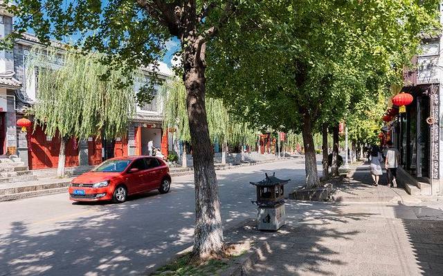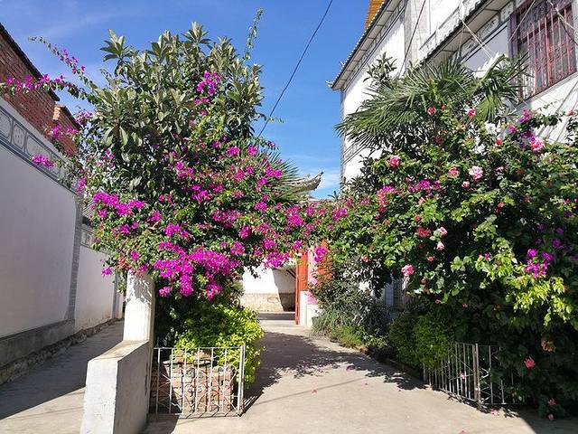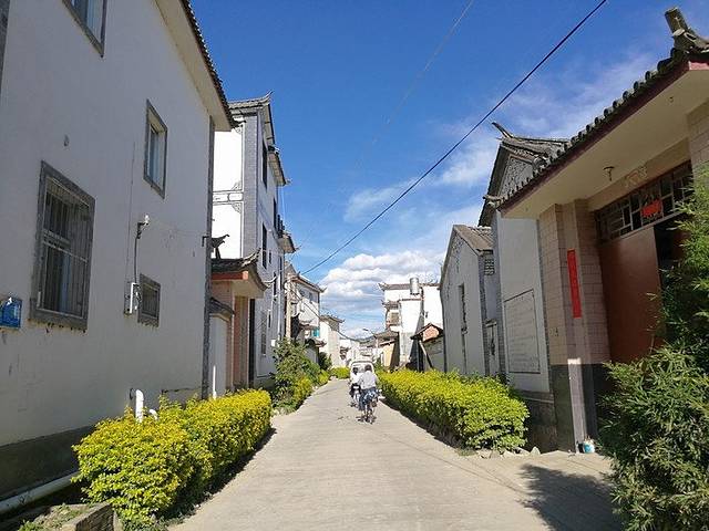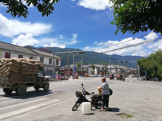 磨磨蹭蹭到十点才从酒店出门,到风花雪月大酒店的时候都已经11点多了。这里给大家讲一下到喜洲的情况,目前到喜洲有两种比较主流的方式,一是租电瓶车,费用30元,可以骑个来回,不过千万别到处溜达,容易半路没电自己到时候推回来就悲剧了,还有就是租车千万记得拍好照片,不然还车的时候容易以一些刮痕和损坏扣你押金,这个套路在大理古城比较多见。另外一个方式就是像我这样到“风花雪月大酒店”门外的大丽线边上等过路大巴,8块钱一个人,到喜洲古镇外面的路口这里下车,坏处是路上不太方便看风景。本来我也是想选择租车的,但离开古城的时候天气很差,怕路上下雨,结果到了后又蓝天白云,有点小后悔~