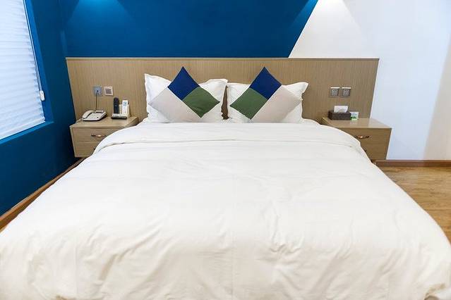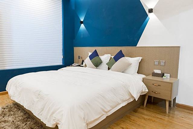 房间是白天拍的,所以看着更漂亮一点,晚上手机像素不够没法拍清楚。酒店的房间面积是很良心的,打开房门的第一眼真心是会被惊艳到。五六十平米的室内面积比很多公寓酒店还要大上一些,加上简约的装修风格使视觉效果更佳