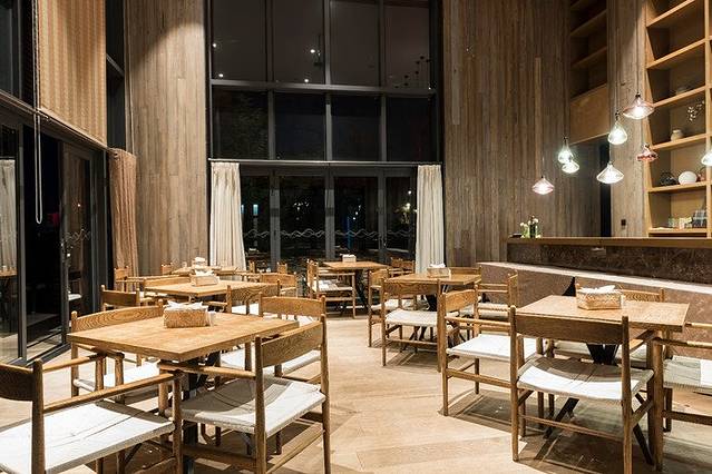 早餐厅位于昨晚拍照的大厅背面,这一边的颜值又高上一些。特别是房与房之间的隔板很是有特色,中间的连接处采用了红色主题,起到画龙点睛的作用。