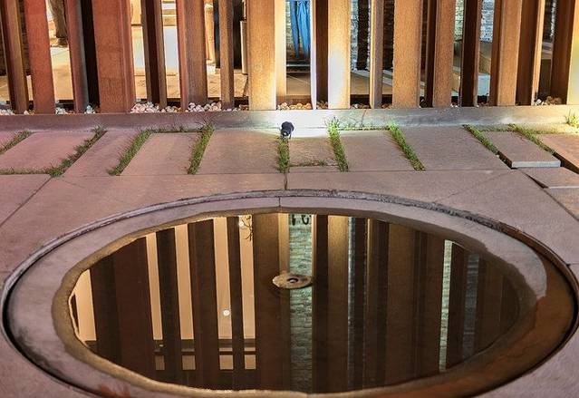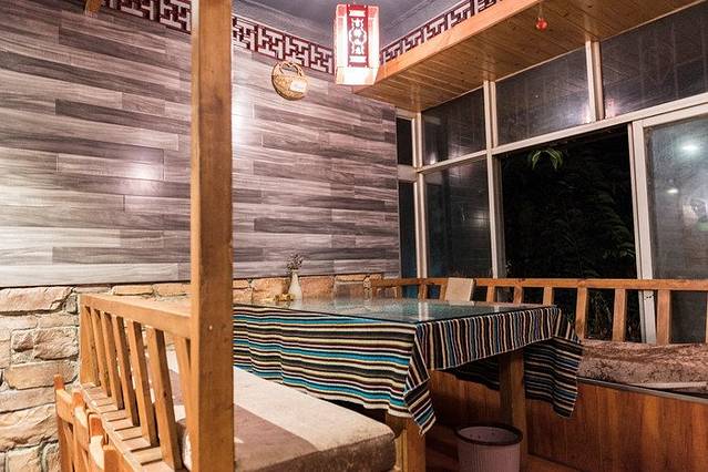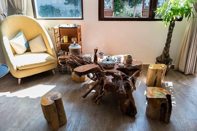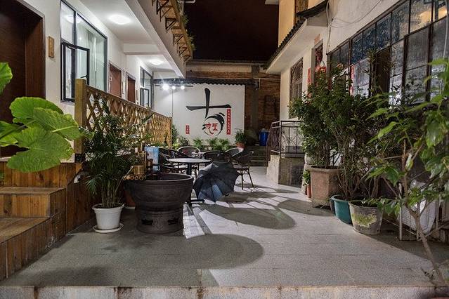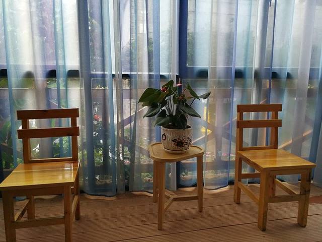 院子里的小喷泉晚上关闭了,白天会一直喷水,这里配合旁边的木排也是极美。而且按照中国风水学说来讲,水生金,院子里有这么一汪活水可以招财,入住的客人也能沾点福气啊~