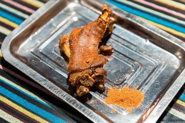 【建水兄弟鸡脚王】是大理一个很有名的烧烤品牌,目前在大理古城和下关开了很多家店,也找不到哪家才是真正的正宗,只好顺着街道走,到旁边的漾鼻路166号看到了这一家店,就进来点了一些。价格挺贵,一条小鲫鱼、一份鸡中翅、两串牛肉四十多块钱。不过味道的确还可以,就是烧烤的速度太慢了一点。