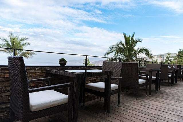 酒店里的这个院子面积不是很大,但设计的还算精致,该有的景色都能看到。右手边没拍到的地方还有一排台阶可以上去到达生态园,台阶两旁开满了黄色的小花,如果是情侣入住的话这里可是一个拍照片纪念的好地方。