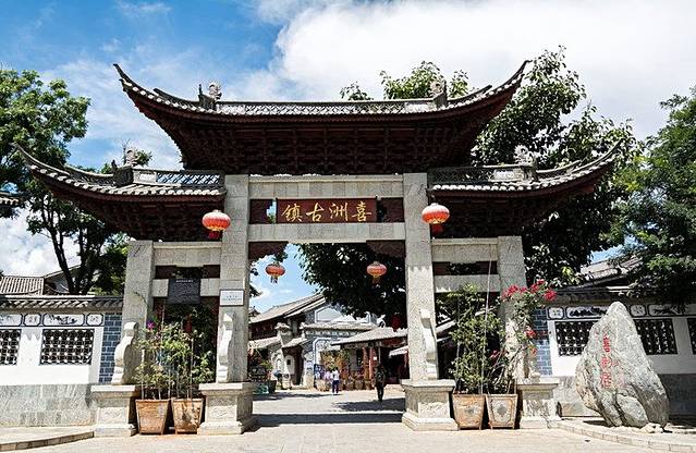 从大理古城骑摩托车过来一路看景色大概是一个半小时左右到,大巴三十多分钟。喜洲东临洱海的海舌公园,西靠苍山脚下的村庄农田;作为白族聚居的城镇,喜洲最吸引人的就是它保存最多、最好的白族民居建筑群,以及古镇内居住着的白族老人们,都是一些不可错过的风景