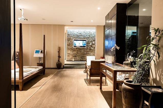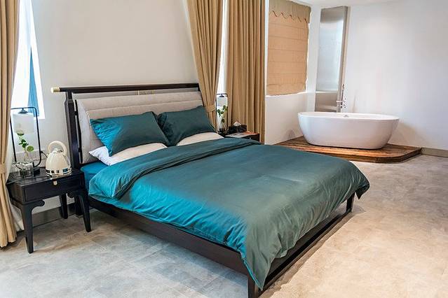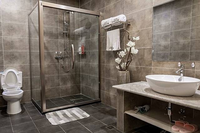浴缸背后是一个观景玻璃,放上一缸温水,泡上一杯绿菜,听音乐高低起落,赏窗外风花雪月,奢华与情怀,都在这一刻感受~