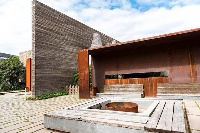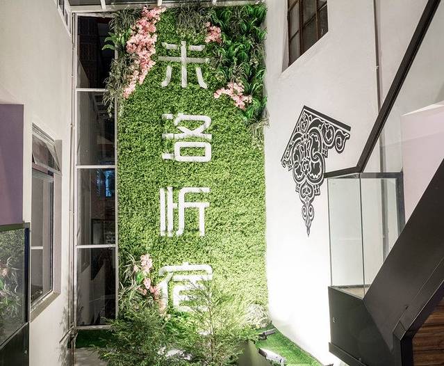 酒店外观设计比较有特色,左边鲜花绿墙,一番生机勃勃的样子;隔开中间木墙,右边却是老工厂模式的工业风,这一活一旧的对比感很能在第一眼就引起客人的兴趣。而且整个酒店也是走的精品路线,占地面积这么大,却只有25间客房,且每一间客房都有自己的特色所在