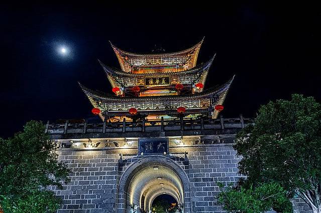 回到古城,把车一还,拿着押金又去吃了一碗土鸡米线,真的是太爱这个食品了。吃完往古城夜市走去,想着明天离开那么今天再好好逛一下。洱海门夜市街位于古城东面,这里也叫大理古城东门,从还车的租车行过来步行几分钟的时间即可。洱海门的由来是因为古代洱海就在城门外面,这个城门出来即可到达洱海边上。但由于地势和水资源的变化,洱海面积不断萎缩,目前洱海门出来到洱海是有四五公里的路程,但也由此可以推断出当年洱海水域是何等的广阔~