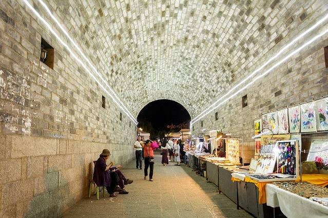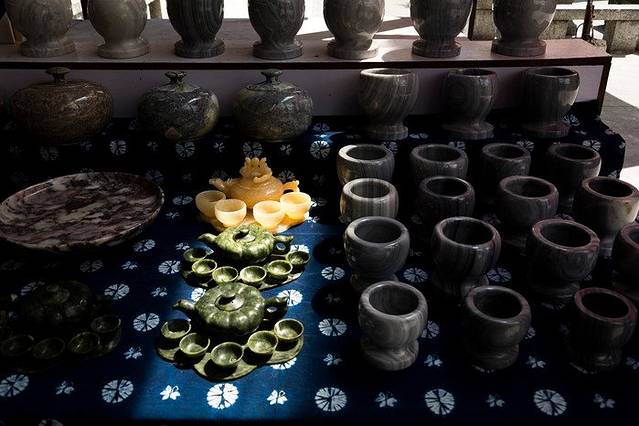 这里也有一些卖小商品的,以民族服饰和纪念品为主,比较特色的是卖古董石头,聚集在城墙下面,也算是独特的风景~