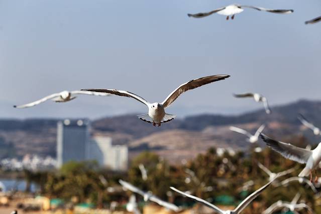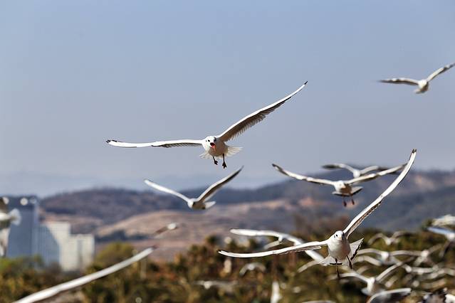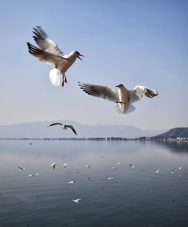 昆明滇池是海鸥的栖息地,但是抚仙湖更是海鸥的世外桃源。这次带队去西双版纳,途中经过抚仙湖,让我和同行游客拍得不亦乐乎。