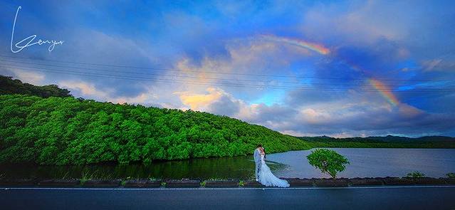 八.路线设定,我想拍一套是与众不同的婚纱照,所以预定了出海自定线路一天,加星空加夕阳,后来因为下雨,夕阳没拍上,就拍了雨景和星空,然后我突发奇想,跟工作人员说要把夕阳改成日出,他们竟然答应了完我心愿,谁知道,原来日出可以要凌晨3点就起来化妆,5点就要到达景点的,在拍摄的时候,十万个抱歉在我心里头飘荡,感觉我太让人累了,也太感动纪梵希工作组圆了我的梦,那天还拍到了彩虹