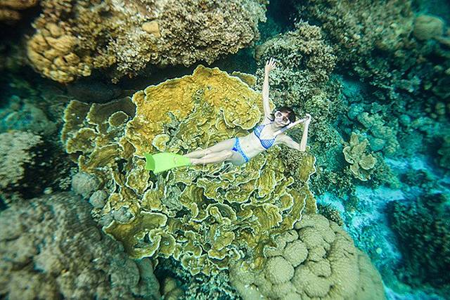 下午3点,开始海底摄影培训,地点就在百悦大饭店内的私人沙滩,这里的海水就像玻璃水一样,是透明的,海底很多很多珊瑚和小鱼,小鱼是孔雀蓝的,一下水就围着我转,美晕了,据说,有私人沙滩可以安全培训潜水的,也只有他们一家。帮帮哒。大概1小时不到,我就已经掌握了可以拍摄的技能了,给自己一个赞。
