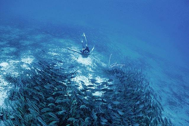 再来一张海底随拍,这是摄影师把我拉下去,浮上来的时候拍的,工程浩大呀