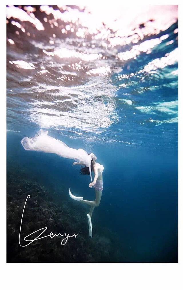 今天我都忘了一共换了多少衣服了,基本都是自己带的比坚尼和纱裙为主,摄影店提供了白色脚蹼给我,我在旅行社又租了彩色脚蹼,哈哈,装备连脚蹼都是换着来搭配的,绝了