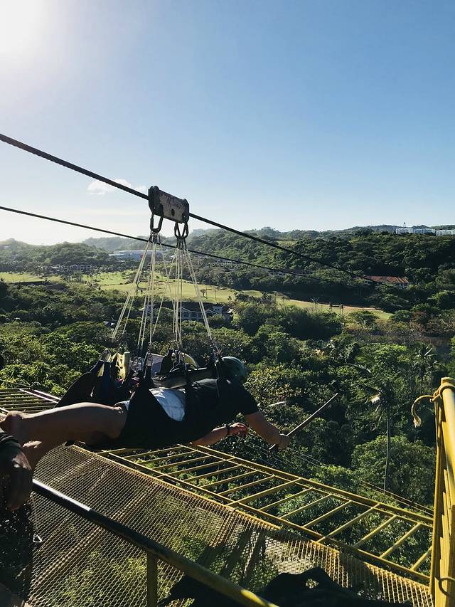 普卡两个小时足够了,然后我们回到市区的Cmall吃了午饭。Cmall是长滩岛这几年新开的综合体,所谓综合体就是一个影院一个超市几家小店,吃过饭歇过脚,我们就去了卢霍山。之前很多攻略吐槽了开卡丁车上山这个项目,于是我就直接TUTU到了山顶。司机小黑告诉我滑索的票价是3500P,报价这么不靠谱,我就让他退下了。某宝的价格是人民币80,虽然多费了一些唾沫,反正我是低于这个价格搞定了门票,一起滑索的一个大哥说他们是280/位,我没忍住笑出了声音。滑索去很刺激,缆车回很惬意。一边是群山、一边是海滩,畅姐连续玩了两次才过瘾。我又想起了她去年夏天在大阪环球影城连坐五次过山车的经历……感觉以后带这样的女汉子出去玩有点力不从心了呢….