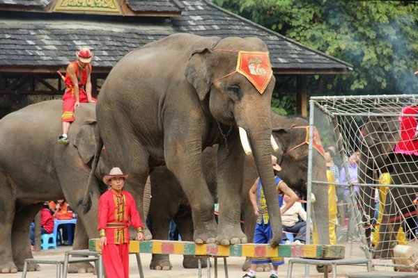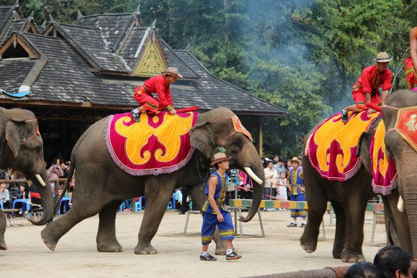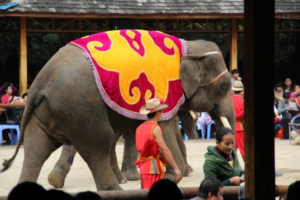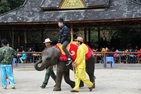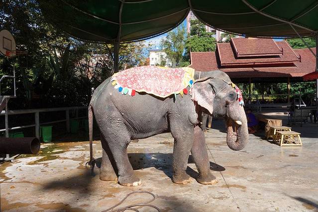 歌舞表演前,剧场门口可以骑大象。曼听公园每天定时有大象、鹦鹉表演,可能我圣母心泛滥,真心觉得这是虐待动物,所以没有观看。