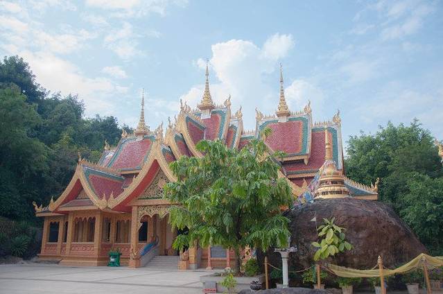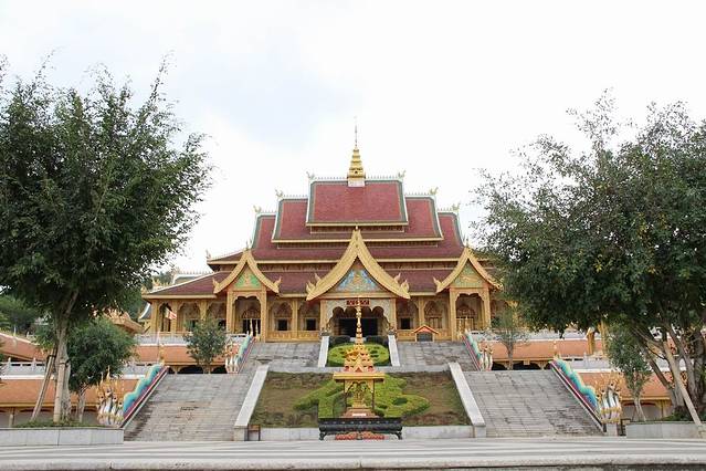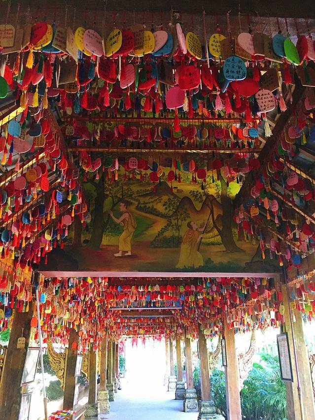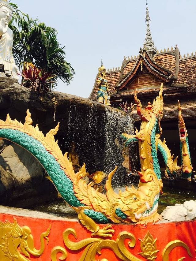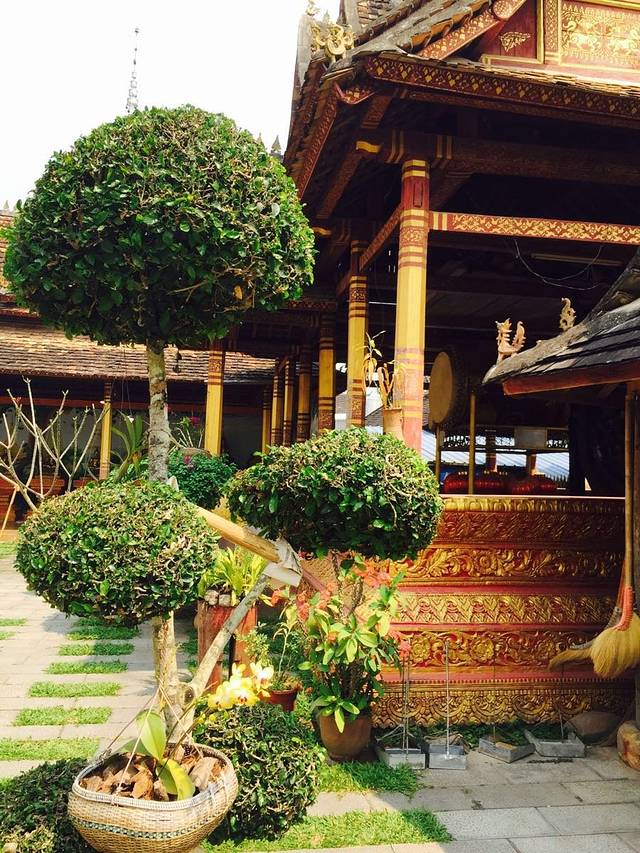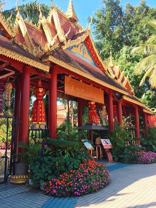 勐泐大佛寺位于勐泐大道的尽头处,门票120元每人,如果体力好可以直接爬上山顶,对于体力稍微差一些的推荐乘坐观光车登顶,虽然坐车的时间不长路途也不太远,但是免去了3000多级台阶的痛苦,我们是从山顶往下游览的,山顶的金佛威严巨大,从山顶还能看到勐泐大道像中轴线一样笔直和看到整个景洪市区,大佛寺每天都有泼水节表演,也是叫浴佛仪式,在旁边还有孔雀放飞的活动,很适合带小孩的家庭前往游玩。再往下走,金碧辉煌的庙宇同样气势恢宏,充满了泰国风情
