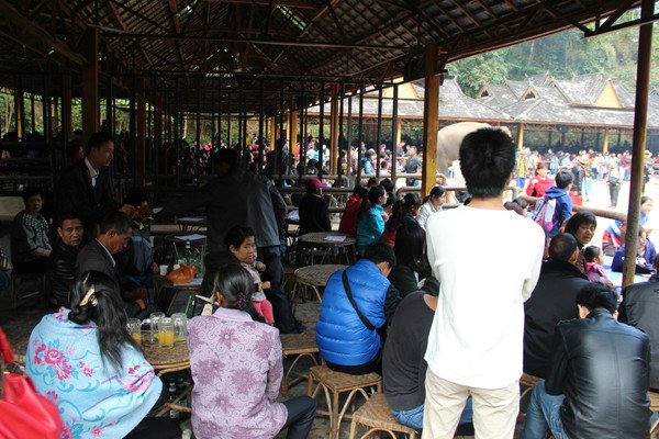 18:30开始迎宾表演,游客可体验一下竹竿舞,然后去用餐。