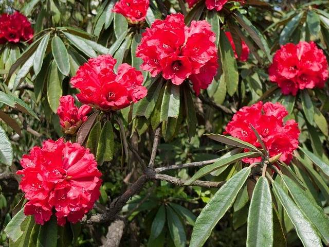 菌子山素有天然大花园、天然植物园、天然动物园、天然野果园、天然菌子园、天然奇石园、天然游牧场之美誉。春天,万顷杜鹃,争奇斗妍,杜鹃花漫山遍野,红的、粉的、白的......颜色各异,摇曳在山林云雾之间,灿然于清风艳阳下,美不胜收。