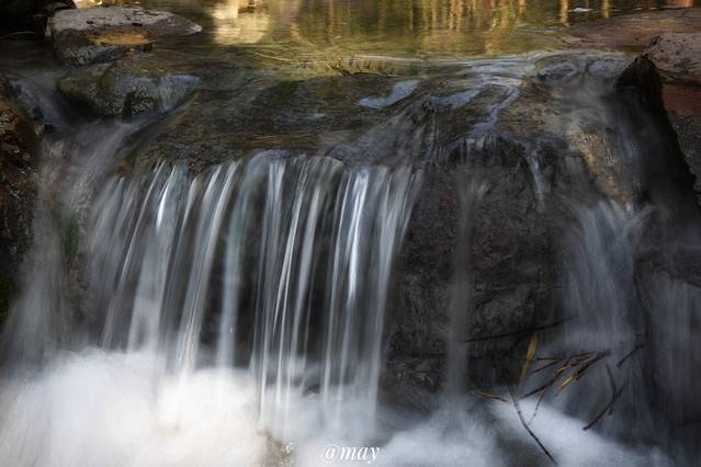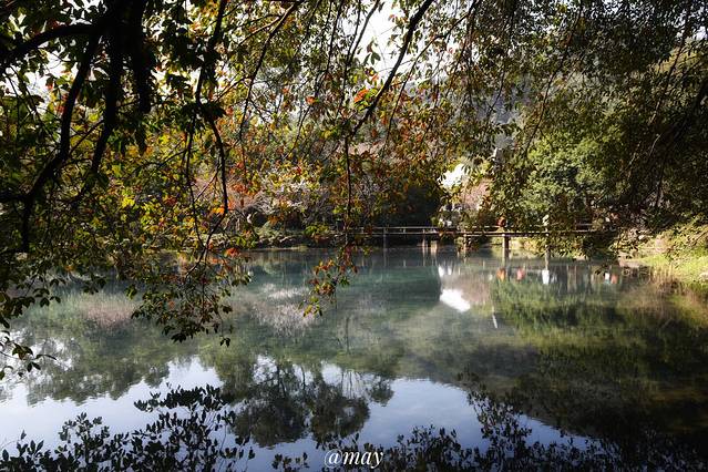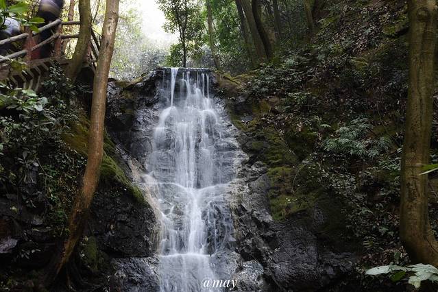 第二天本打算去云栖竹径的,但是被一个自称是“园林工人”的大叔很热情推荐去九溪瀑布,乾龙古道。大叔太热情以至于我们都不好意思拒绝,然后就在大叔的指引下做了4路公交到九溪站下,然后乘坐5元每人的面包车去瀑布,越到后面越觉得有种被骗的感觉……我们看完瀑布,沿着乾龙古道一路往上,拍照,聊天也是不亦乐乎!然后到了一个梅岭村,村庄依山而建,村民热情邀请我们进去免费喝茶,我们已经提高了警惕,过分热情必有其因啊!我们就继续寻找下山的路,好不容易到了一个公交站,有个包车师傅跟我们说这是单行线且周末,所以没有公交滴!因为师傅说话语气不是很友好,所以我们决定徒步下山,没想到刚走50步左右,公交车来了,那是一个尴尬啊,我们更加坚信“无事献殷勤非奸即盗”(开玩笑哈),差点对杭州人民失望了,哈哈哈,杭州的交通还是很人性化的,手动点赞