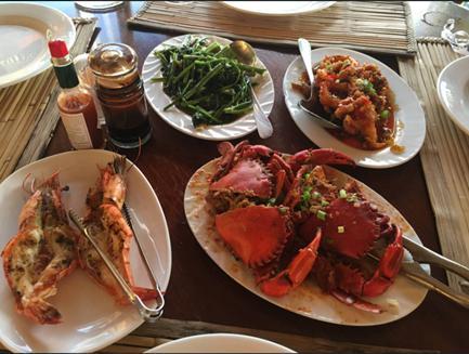 以上是买的海鲜在旅馆自己做的,一顿饭不超过50RMB吧,具体价格有点忘记了,就只记得一个老奶奶问我要不要买蟹,100P≈13RMB一只,超级大,反正我吃一个清蒸蟹吃饱了~~