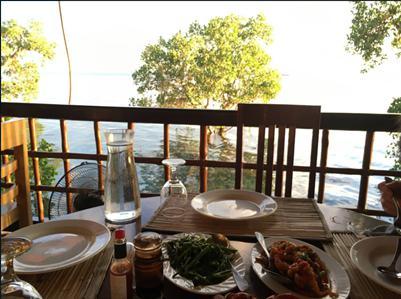 主要目的不是公主港,第二天还需要转车去巴顿港Port Barton,让旅馆的小妹妹帮忙定了第二天最早去Port Barton的车,又问了哪里有海鲜可以吃,按照小妹妹的指点,去了一家建在海上的餐厅,环境很美,但是我拍出来就是渣渣,请欣赏Amelie的渣渣图片。