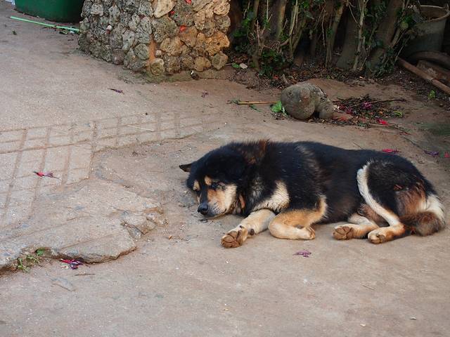 回去路上的狗子,每天它都这样睡着,就没看见站起来过hh
