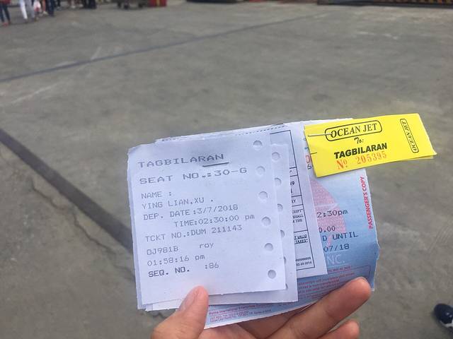 以上行程接送都包含在我们之前的价格里了 其实还是挺方便的 吃了午饭坐船回到杜马盖地那边 我们提前准备好了行李 然后司机送我们去了码头 坐下午两点半的船到塔比拉兰 tagbilaran码头